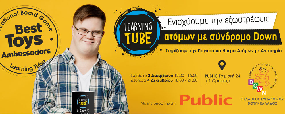 Με την υποστήριξη της Public και βασικό στόχο την ενίσχυση της εξωστρέφειας παιδιών με αναπηρία και της ίσης και δίκαιης συμμετοχής τους σε εμπορικές και κοινωνικές δράσεις, οι “Best Toys Ambassadors” θα φιλοξενηθούν στο κατάστημα Public (Τσιμισκή 24) στη Θεσσαλονίκη και θα αναλάβουν να μας ξεναγήσουν στον όμορφο κόσμο της γνώσης που προσφέρουν τα ελληνικά επιτραπέζια Learning Tube μέσα από το παιχνίδι!