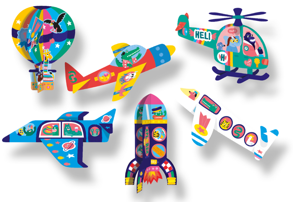 Από αεροπλάνα μέχρι φουτουριστικές ρουκέτες και αερόστατα, τα παιδιά έχουν τη δυνατότητα να φτιάξουν τον δικό τους στόλο αεροπορικών μέσων και να τους προσδώσουν τη δική τους μοναδική εμφάνιση! ✈️🎨