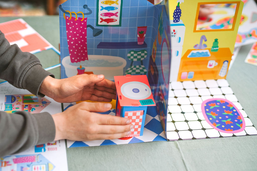 Μόλις ανοίξετε το κυκλικό καρουζέλ, ξεδιπλώνεται μπροστά σας μια χαρτονένια κατοικία με 4 ξεχωριστά δωμάτια που περιμένουν να τα διακοσμήσετε και να τα ζωντανέψετε! 🌈