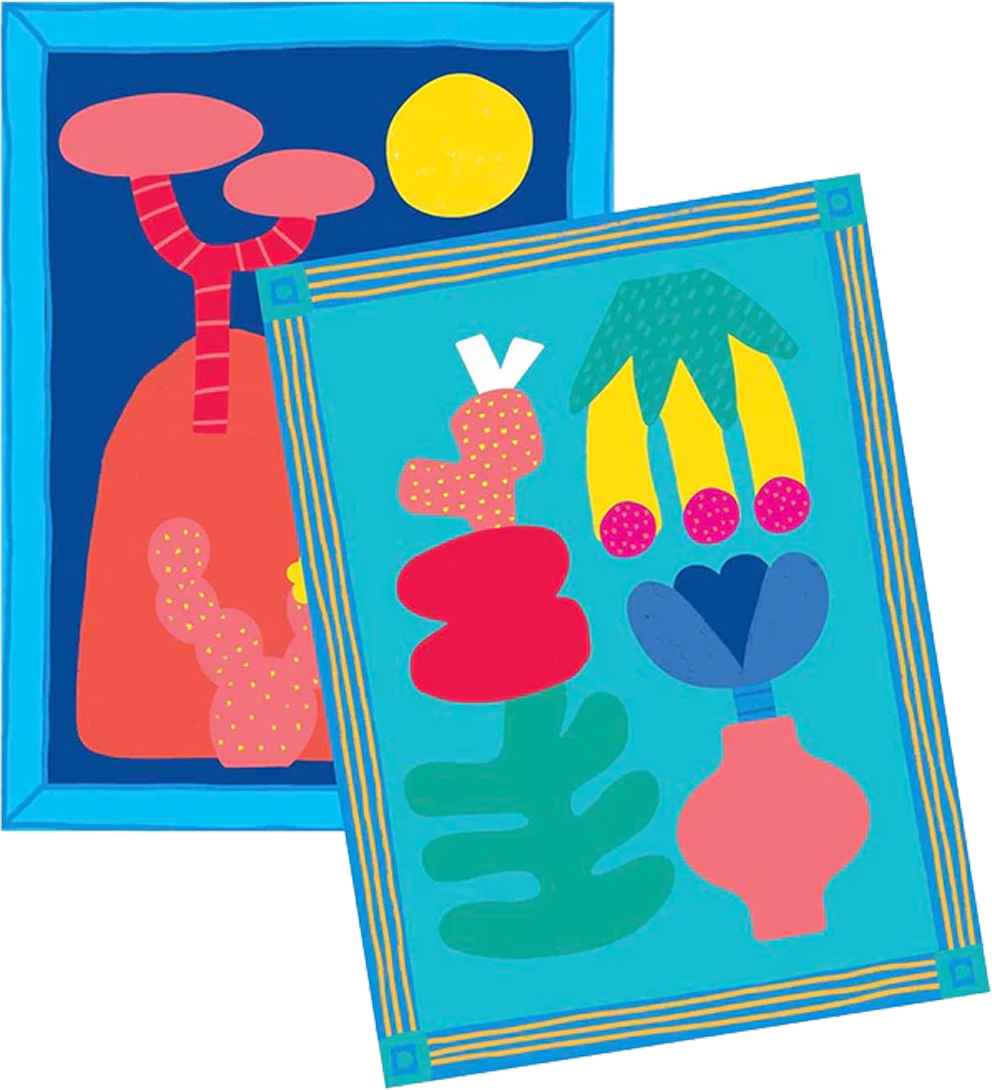 Το Modern Arts περιλαμβάνει 8 πίνακες τοπίων σε pop αισθητική, που τα παιδιά καλούνται να διακοσμήσουν και να ολοκληρώσουν χρησιμοποιώντας φωτεινά αυτοκόλλητα.